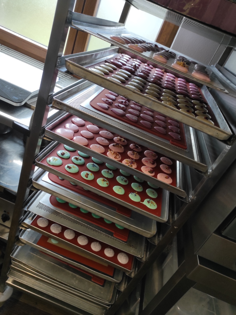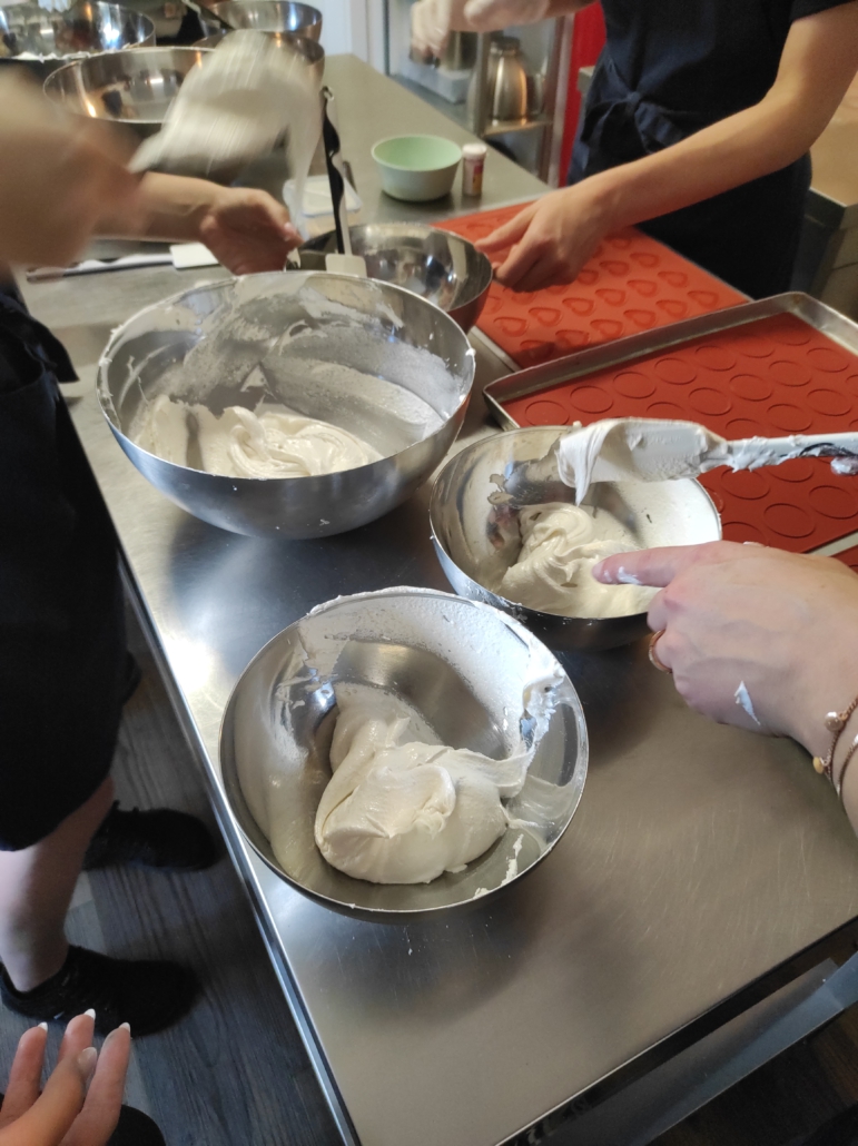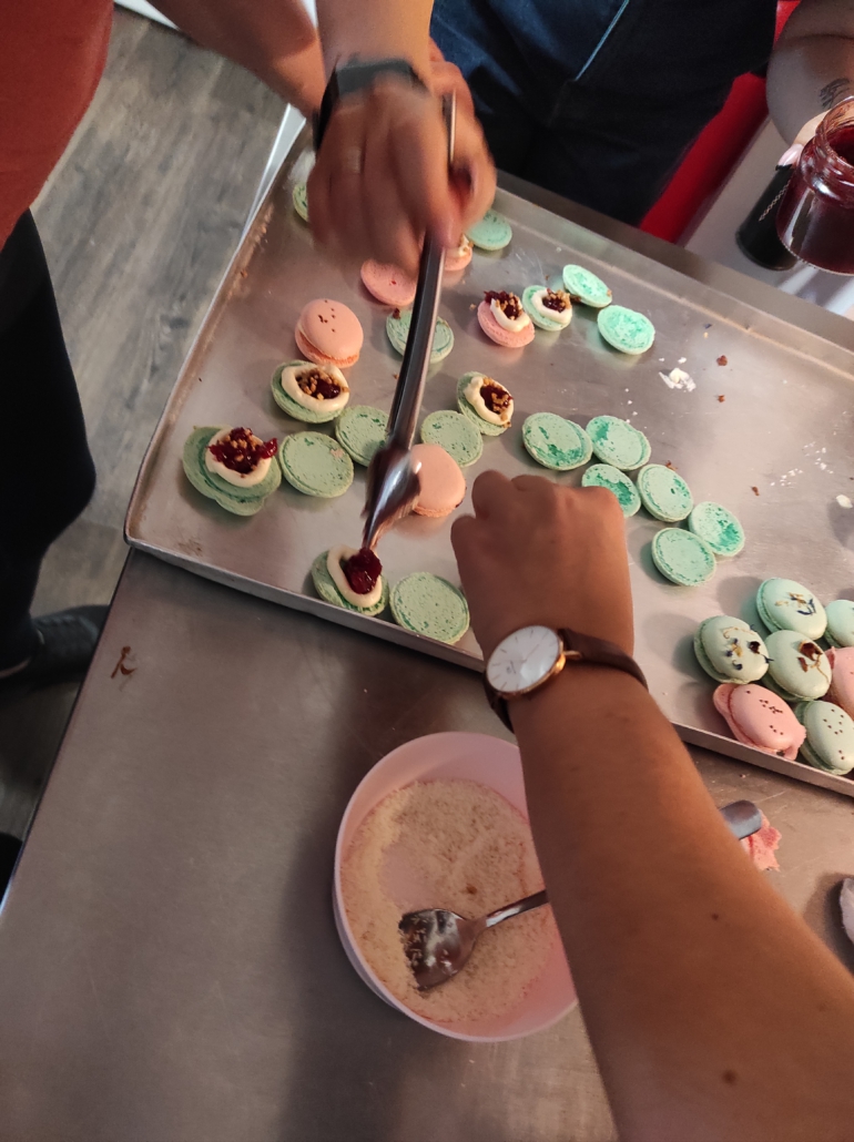 Gemeinsam werden die Halbschalen gebacken, Füllungen gekocht, gerührt und die Macarons nach Belieben gefüllt. Am Ende nimmt sich jeder Teilnehmer ca. 20 Macarons mit nach Hause.